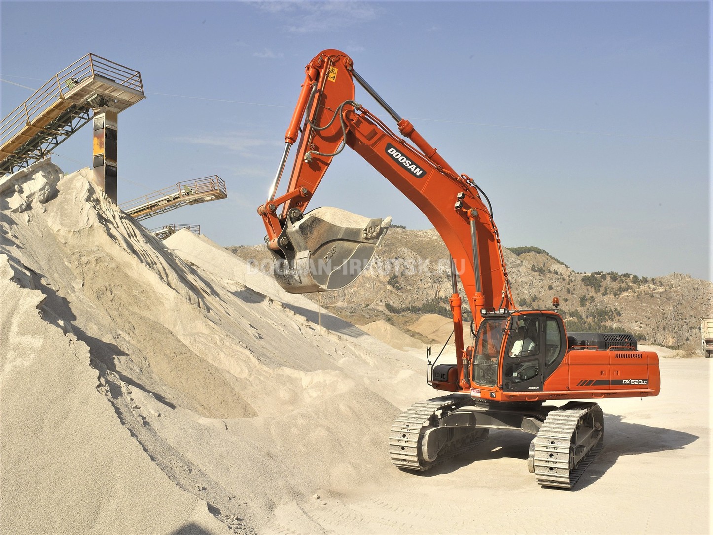 Гусеничный экскаватор Doosan DX520LC – предпоследний представитель в линейке машин с удлиненной тележкой серии DX. Он способен работать в самых неблагоприятных атмосферных и пространственных условиях. Наличие гусеничного шасси обеспечивает повышенную проходимость, устойчивость и минимальное давление на рабочую поверхность, несмотря на большую рабочую массу, равную 50,7 т. Возможности модели можно значительно расширить с помощью установки различного навесного оборудования. Таким образом, экскаватор Doosan DX520LC применяется в разных сферах при проведении работ по расчистке местности, разработке карьеров и котлованов и перегрузке сыпучих материалов.