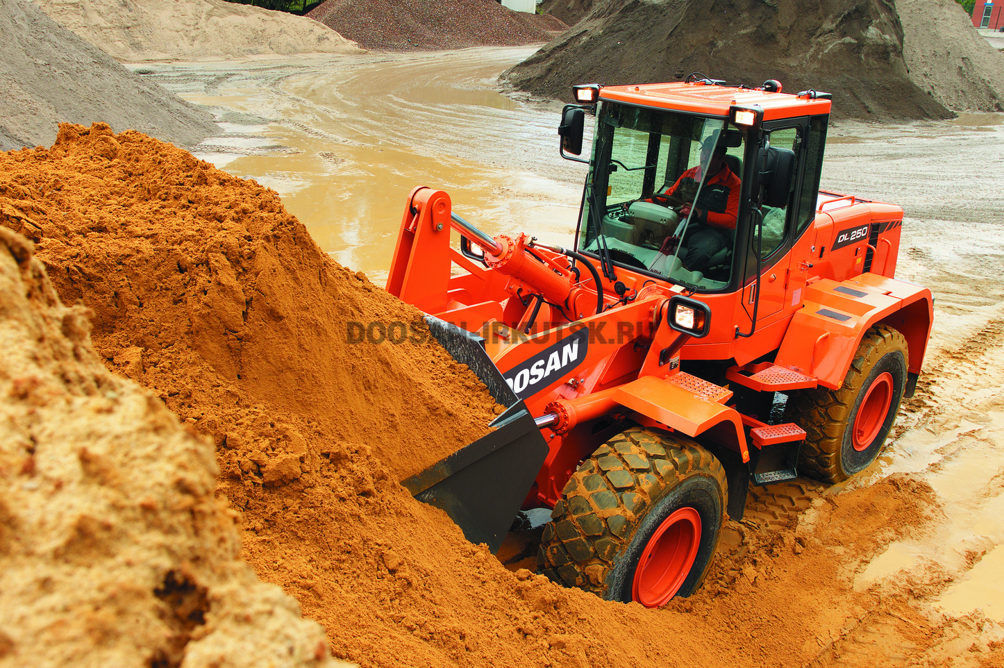 Идеальная объединение мощи и интеллекта Когда исключительная мощность сочетается с высочайшим мастерством, колесный погрузчик достигает пика своей эффективности. Погрузчик DL250A обеспечивает выдающуюся производительность. Причина, с одной стороны, в том, что впечатляющее усилие копания позволяет работать с твердыми материалами, а, с другой стороны, высокая тяговая мощность позволяет легко проникать в материал. Благодаря мощной гидравлической системе оператор может работать быстро и эффективно. Сердцем погрузчика является новый двигатель D1146T компании Doosan с механическим управлением.